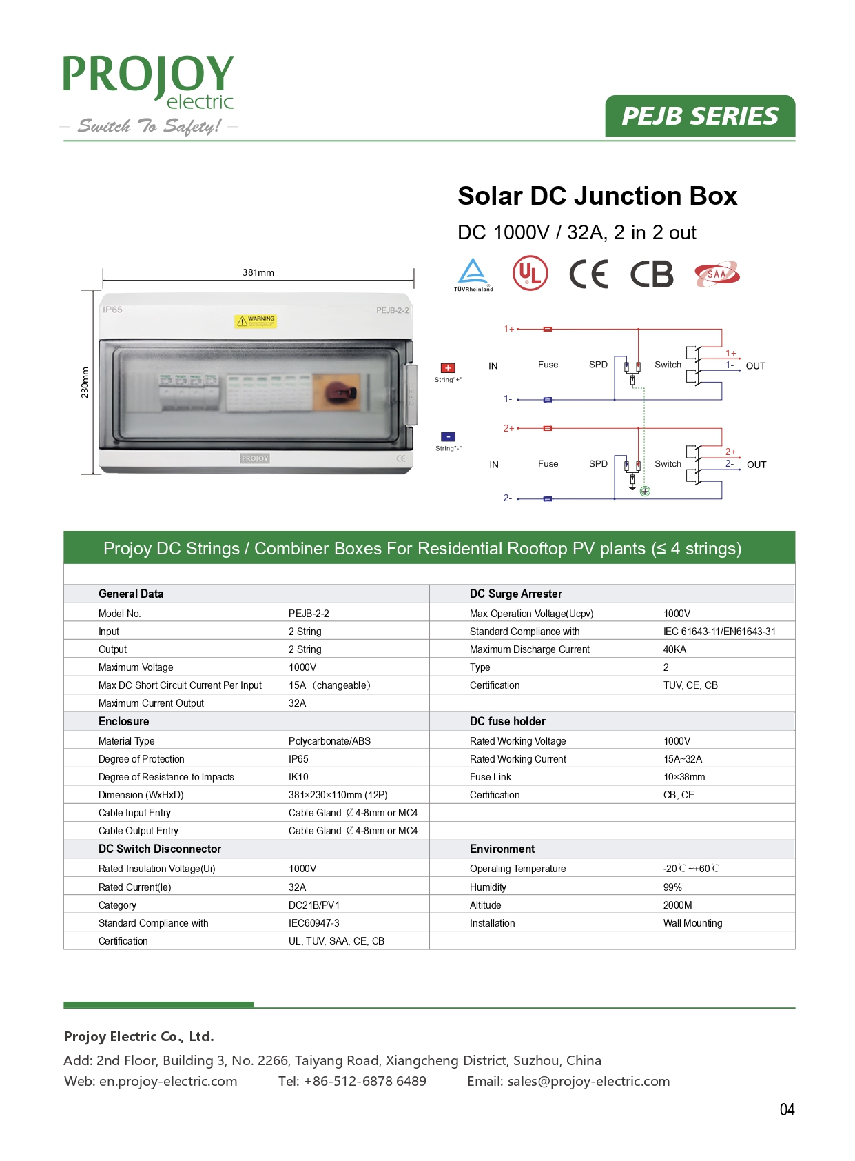 Caixa de Proteção solar DC Protetor contra surtos Interruptor solar PV 32A Caixa combinada PV 1000V Proteção contra raios Interruptor de fiação Caixa de distribuição 15A Caixa de conectores DC String: 2 entradas 2 saídas